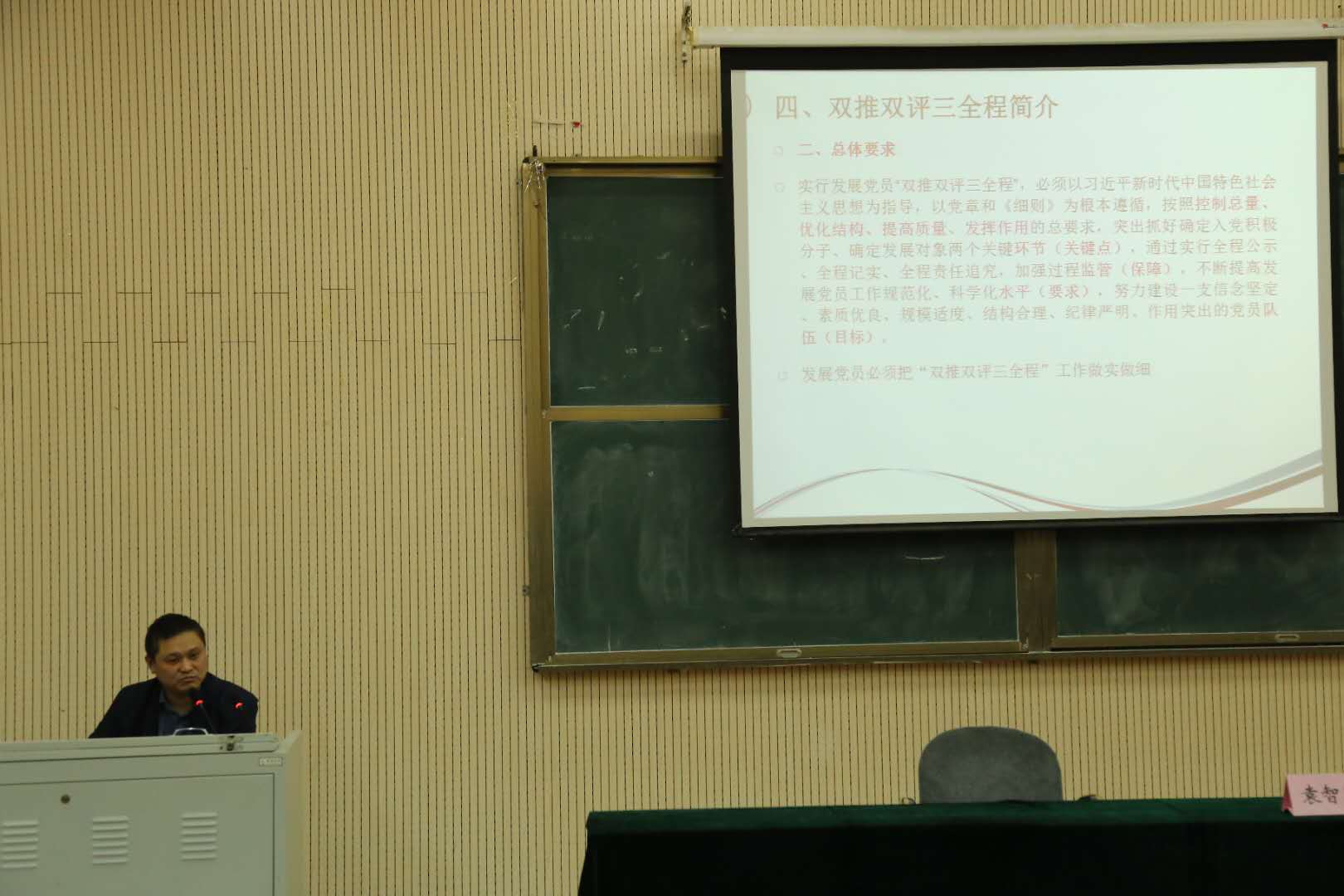 袁智慧所作辅导报告主题鲜明、思路清晰、举例详实,具有很强的理论性、指导性、实践性。内容包括发展党员工作的五个阶段25个流程,申请入党、入党积极分子的确定和培养、发展对象的确定和考察、预备党员的接收、预备党员的教育考察和转正以及对发展党员工作过程中的总要求等,使大家对发展党员工作有了更加明确的认识和把握。