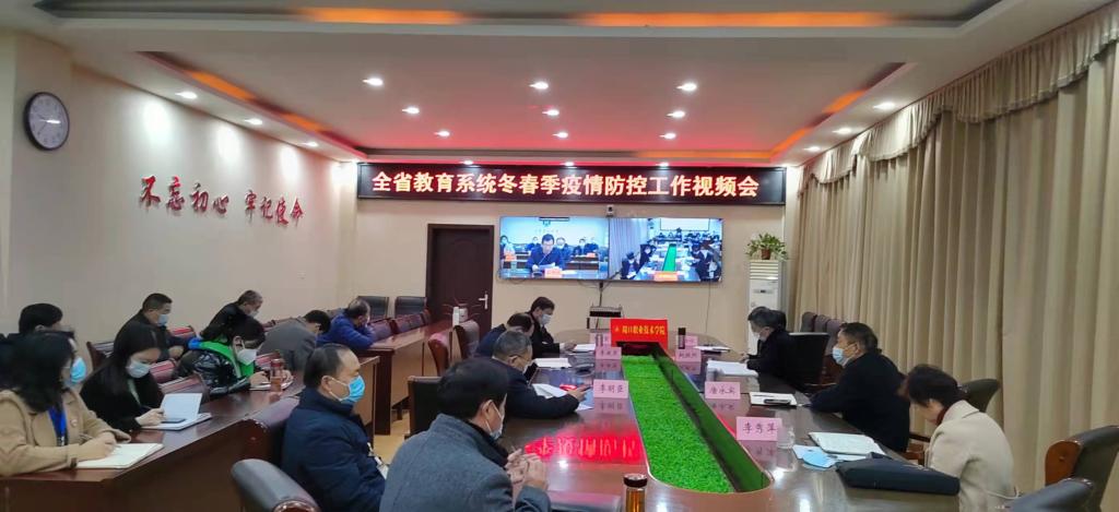 为进一步贯彻落实党中央、国务院和省委、省政府疫情防控工作有关部署,安排全省教育系统疫情防控工作,12月12日上午,省教育厅召开全省教育系统今冬明春疫情防控工作视频会议。省教育厅党组书记、厅长宋争辉出席会议并讲话。省教育厅总督学李金川主持会议。我校在开元校区第三会议室分会场组织收听收看视频会,全体校领导出席,各疫情防控工作专班、各二级学院及相关部门负责人参加会议。