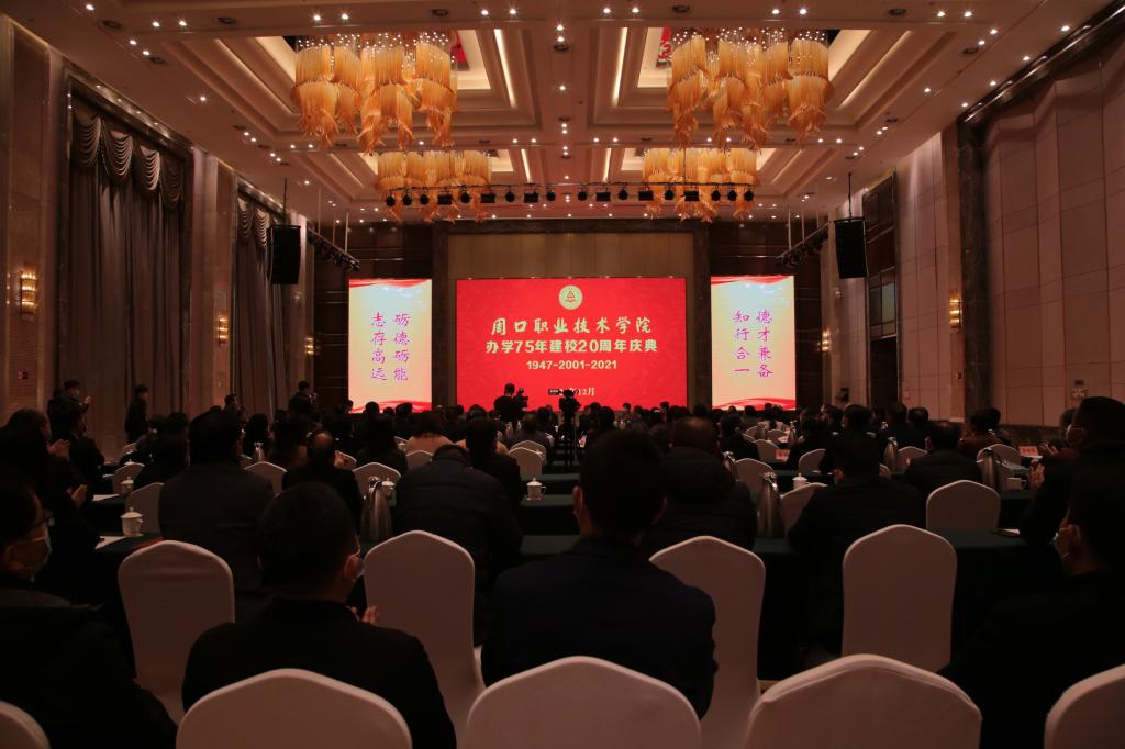七十五年弦歌不辍,薪火相传;二十载砥砺奋进,春华秋实。2021年12月18日上午,我校隆重举行办学75年建校20周年庆祝活动。周口市委常委、宣传部部长王少青,周口市人大常委会副主任建志,周口市人民政府副市长秦胜军,周口市政协副主席杨珺,河南科技职业大学党委书记王剑,河南省政府参事、驻马店市原副市长张德轩,周口市人大常委会原副主任解冰山,万象城allwincity官网原党委书记李松海,万象城allwincity官网原校长张卫宪出席活动。出席活动的还有全体校领导,周口市直部分单位的领导,学校部分历任领导,市内兄弟院校的领导,部分知名校友。校长李清臣主持会议。