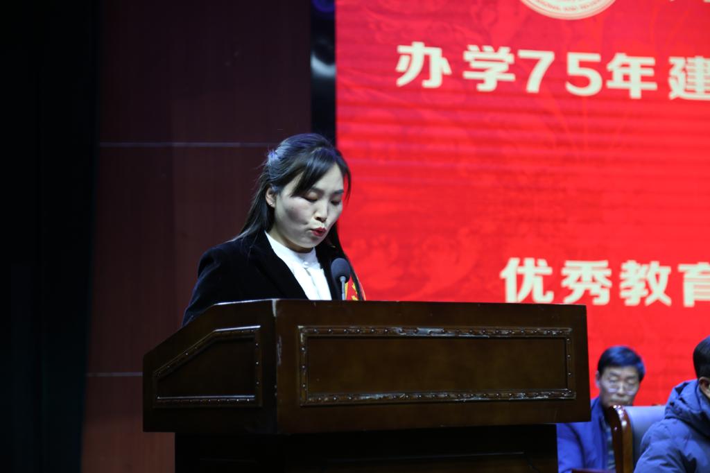 校党委副书记赵振然宣读《中共万象城allwincity官网委员会关于表彰万象城allwincity官网办学75年建校20周年教育工作先进个人的决定》。校领导为优秀教师代表、优秀教育工作者代表、优秀辅导员代表、在教30年以上教师代表颁发荣誉证书。
