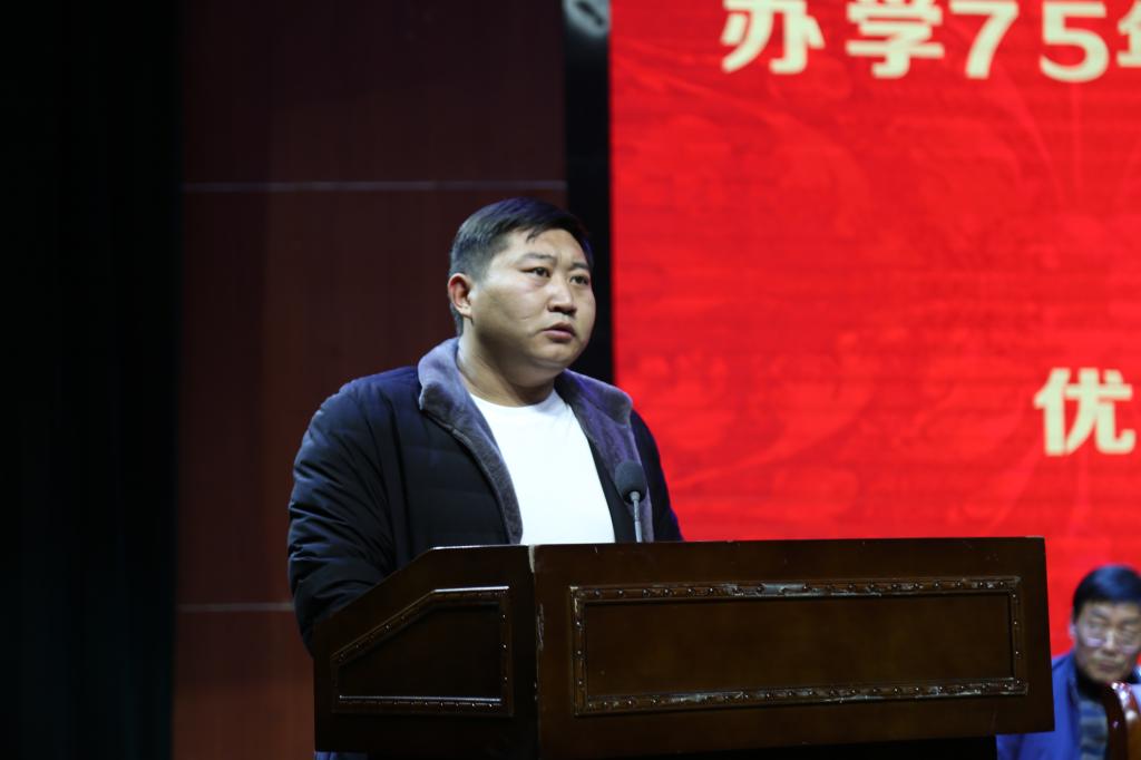 优秀教师代表赵新、优秀教育工作者代表张华珍、优秀辅导员代表普俊分别发言,从不同角度分享了在各自工作岗位上的感受与体会,表达了他们对学校发展的诚挚祝福。在教30年以上教师代表李香在发言中讲述了她30年教学之路的收获与感悟。三年如一日照顾残疾同学王天社,荣获2009年大学生自强之星获得者,优秀毕业生代表常雄建在发言中表达了对母校、恩师以及同学们的惦念和感激之情。